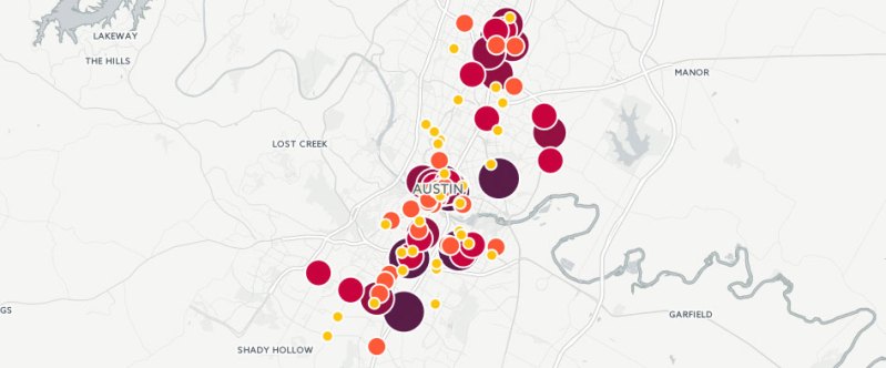 But it also helps to put traffic safety data directly in the hands of the public, so people can see for themselves where action is needed. And for that we can thank our friends at Sutliff & Stout, the law firm that sponsors Streetsblog Texas. They wanted to see which intersections in Austin are the most dangerous for pedestrians, so they dug through six years of TXDOT crash data.